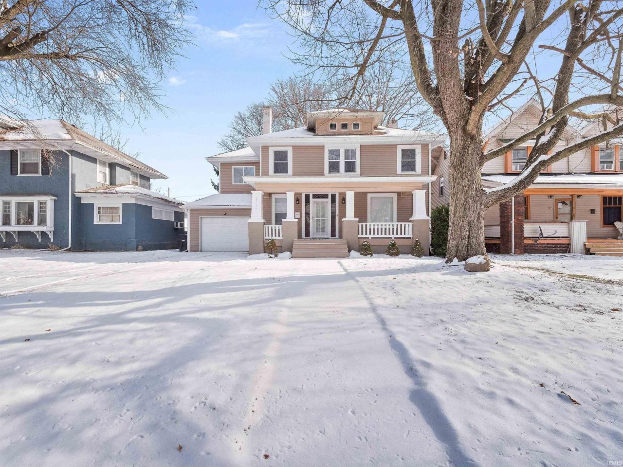 Welcome to this spacious and beautifully updated 4-bedroom home offering just under 2,100 square feet of comfortable living space. From the moment you arrive, you'll appreciate the covered front porch, oversized driveway, and attached one-car garage, with garage door access to the backyard, fully enclosed by a privacy fence?perfect for relaxing, entertaining, or pets. The exterior has been freshly updated, while the interior has undergone extensive updates including HVAC, LVP flooring, interior paint, plumbing, and modern light fixtures?allowing you to move right in with confidence. The thoughtful floor plan includes one bedroom conveniently located on the main level, ideal for guests or a home office. Upstairs, three bedrooms are generously sized and feature walk-in closets in two, providing exceptional storage and comfort. The home also offers a versatile bonus space above the garage, perfect for a studio, flex room, or additional living area. The basement is large, clean, and dry, with higher ceilings and freshly painted concrete floors, offering excellent storage or future finishing potential. Located in an unbeatable setting with views of downtown Fort Wayne, this home is just a short trek to Parkview Field, the Botanical Conservatory, and endless dining, shopping, and entertainment options. A rare opportunity to enjoy space, privacy, updates, and location all in one exceptional property.