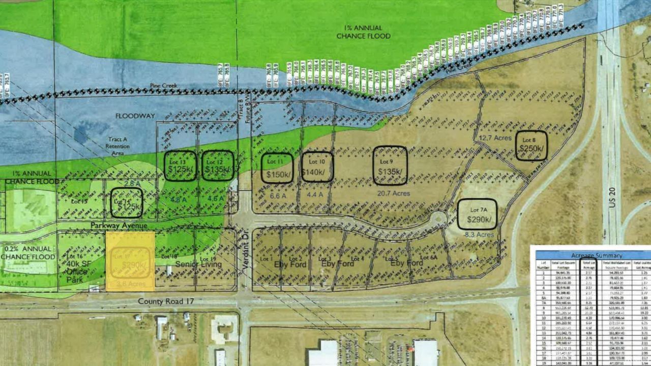 Pinecreek at 17 Development. Prime Residential/Mixed use, Hotel development land shovel ready for your next development. Roads, utilities including city water and city sewer(can handle up to 500 multi family residential unites) signage all in place ready for your legacy. Pinecreek Development on CR 17 in Elkhart offers various land parcels, already surveyed, platted, shovel ready! US 20 BYPASS frontage & Visibility and CR17 Visibility Centrally located, directly off of the US 20 bypass, 2 miles south of US 120, and 4 miles south of the I 80/90 toll road. Indiana and Elkhart County are national leaders in logistics. Indiana is in the median center of U.S. population with the distribution advantage that 70% of the U.S. population is within a days drive of the state. Zoned B-3 DPUD