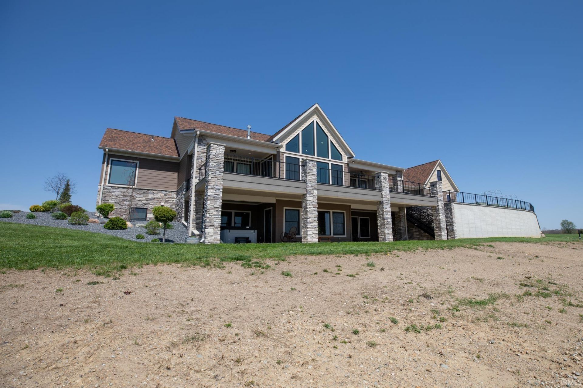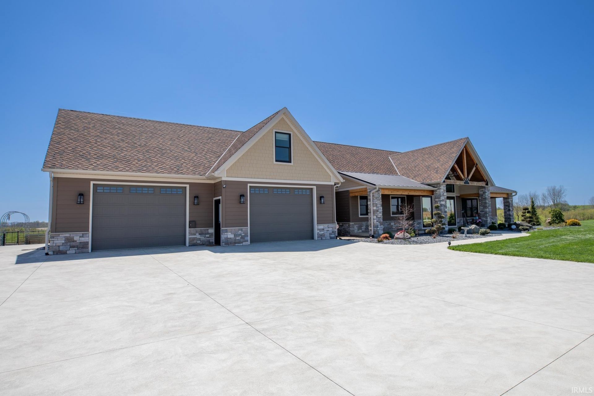 Award-winning luxury meets breathtaking waterfront views in this stunning 4-bedroom, 4.5-bath home, known as 'The Golden Pond by Renewal Homes. Recognized as the 2023 Builder's Association of North Central Indiana Homes on Parade People's Choice Award winner, this custom-built property showcases exceptional craftsmanship and thoughtful design throughout. Set along a private, stocked lake and 43 acres, this property offers a rare opportunity for peaceful waterfront living. Enjoy the private pier, gazebo, and charming shed, all designed for relaxation and entertaining. Expansive outdoor spaces include a massive deck overlooking the water and beautifully maintained garden areas. Inside, the open-concept layout features a chef's kitchen with stone surfaces, bar seating, walk-in pantry, and seamless flow into the dining and living room with a cozy fireplace. The luxurious primary suite includes a spa-like bath with a soaking tub, stone shower, and an impressive walk-in closet. Three-car attached garage has epoxy floors and leads the way to a finished loft with a bedroom, bathroom, and built-in office area. The walk-out basement offers a large rec room with polished concrete floors, space for a future kitchenette, craft room, second laundry area, and access to a private hot tub retreat. Driveway and sidewalks are prepped for heating installation. Home is wired for a whole house generator.