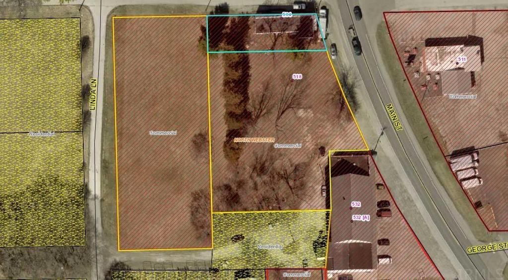 Prime corner lot commercial property in North Webster with 180' frontage on SR 13. The most recent traffic volume report shows 10,181 daily count. Property has road frontage on three streets totaling over 700 linear feet. Approximately 1.79 acres are included in the three parcels. Exsisting bulding ideal for small retail with development of the remaining vacant ground.