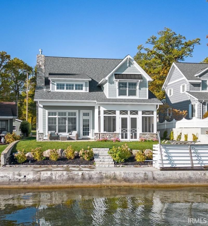 DESIRABLE location on Lake Wawasee, this custom-built home completed in 2021, sitting at LAKE-LEVEL, showcases exceptional quality, character, abundant storage, & a thoughtful layout design?just minutes from shopping & restaurants. Offering 3,640 sq ft, this spacious lake home features 6 bedrooms & 5.5 baths, including 2 primary suites. The main level hosts the 1st primary suite along with another bedroom w/ensuite. Upstairs is the 2nd primary suite & another bedroom w/ensuite both capture stunning panoramic lake views. The upper level also includes 2 additional bedrooms, a spacious & well-designed guest bath, & a large family room perfect for add'l living & entertaining. The unfinished attic area has already been structurally designed for future completion for a game room. The kitchen is designed for both function & style, featuring floor-to-ceiling shaker cabinetry, quartz countertops, & a large pantry. The great room centers around a beautiful stone fireplace w/shiplap & built-in shelving, creating a warm & inviting gathering space. Outdoor living is a highlight, with 50 ft of weed-free, sandy lakefront & breathtaking panoramic views. Just off the kitchen, a screened porch provides a relaxing retreat, while the covered porch off the great room offers the perfect vantage point for sunrises, sailboats, boat parades, corn hole, & the SPECTACULAR Lake Wawasee 4th of July fireworks. Add'l main-level features include a built-in entry bench off garage, a 1/2 bath, & a spacious laundry room w/ plenty of storage & 2nd refrigerator. There is a charming cottage feel throughout w/high-end finishes such as tongue-and-groove planked ceilings in the kitchen, dining, & great rooms, textured shiplap walls in the oversized hallway, detailed-shaker doors & frames, along w/LVP floors that lead to the upper level, main-level 10-foot ceilings, quartz & marble countertops throughout, upgraded foam & batting insulation, 2x6 Construction, Andersen 400 Series windows, Hardie board & stone exterior, plus upgraded hail-resistant shingles. The oversized 3-car garage is equipped w/a heating unit & an EV charging port. In the winter months, the garage comfortably stores a 23 ft pontoon, 2 jet ski trailer, & outdoor furniture. During lake season, the garage & driveway can accommodate parking up to 9 vehicles.