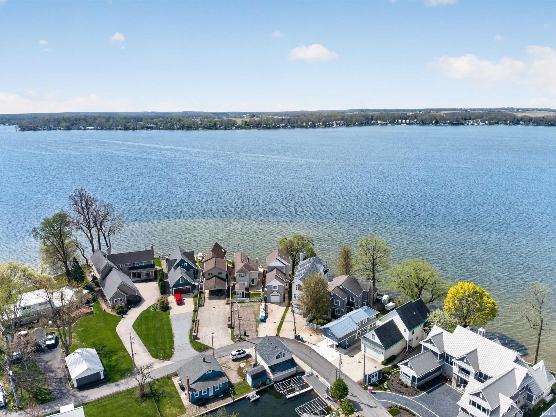 Hello gorgeous?are you ready for breathtaking sunsets over the water? This absolute beauty features everything from 2 ensuites & open concept floor plan, to a glacial stone seawall w/ 53' of sandy beach frontage on all sports Lake Wawasee! Located on highly desirable Ogden Island, in a quiet & peaceful area w/ minimal through traffic, this 3-floor, 4 bed, 3.5 bath is nestled on the SW tip w/ oversized paved driveway & attached 1 car garage (finished & climate controlled w/ extra storage). Built in 2005, it's been meticulously cared for w/ obvious pride of ownership & attention to detail, plus low maintenance yard w/ irrigation allows more time to enjoy the lake! Classic yet attractive exterior is white & grey w/ detailed landscaping & discreet side entrance w/ beveled glass insert & matching transom window. Inside is sure to wow w/ tons of natural light & bright, welcoming atmosphere complemented by 11' ceilings & striking views of the lakefront. The main floor boasts giant walls of windows providing picture perfect views from every angle of the kitchen, dining & living room combo. Kitchen w/ abundant cabinetry & SS appliances has wrap around breakfast bar great for quick bites. Impressive dining room has wrap-around views & sliding glass doors to walk out multi-level lakefront deck. Elegant living zone stars a gas fireplace flanked by build-ins & its own set of sliding glass doors to walkout patio. Half bath completes the first level. 2nd floor primary bedroom is your very own private retreat overlooking the lake w/ spacious sitting/sun room, bed nook & open flex space in addition to en suite bath w/ dual sink vanity & jetted soaking tub. Another good sized bedroom & main shared full bath as well as a general landing/sitting area & laundry completes this floor. 3rd level contains another generous bedroom w/ lake view & en suite bath w/ another jetted soaking tub & final 4th bedroom?plenty of space for entertaining family & friends! Head out to your waterfront deck or oversized pier ideal for sun bathing, lounging & relaxing as you watch the boats go by, dining al fresco, or simply basking in the beautiful natural environment & largest lake in Indiana. From boat-in church services on Sundays, to boat-in restaurants & even access to connected Syracuse Lake, Lake Wawasee has tons to do all year round. Whether you're looking for a vacation home, weekend retreat, or main residence, this home is not ju
