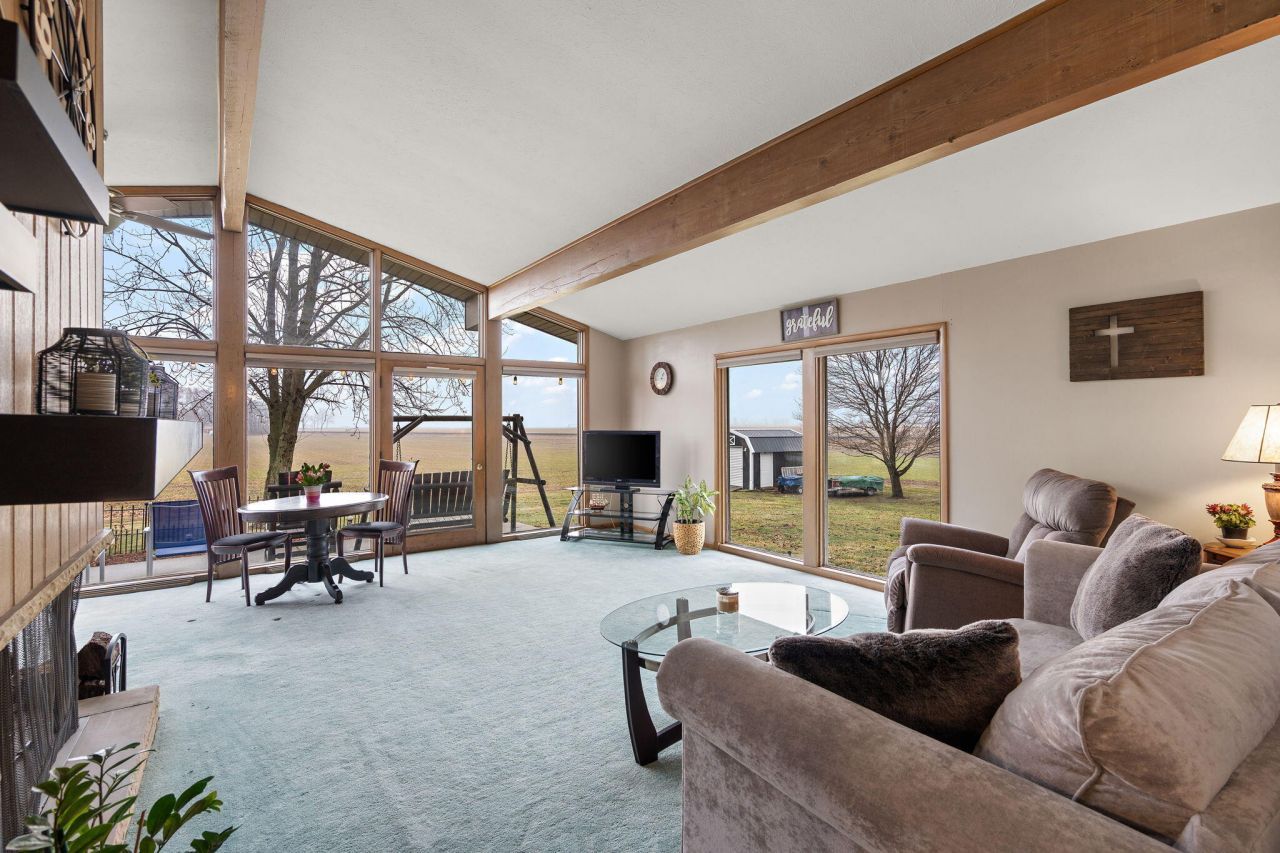 Bright, open, and beautifully maintained! This 3-bedroom, 1.75-bath ranch sits on over half an acre in a peaceful country-like setting in LaPorte and features a stunning living room with vaulted ceilings, a living room wall of windows, and a cozy wood-burning fireplace. The open-concept living room and kitchen create a welcoming space filled with natural light. Remote-control blinds add convenience to the sun-filled living area, while granite countertops and abundant cabinetry make the kitchen both functional and inviting. Just off the kitchen is a versatile dining area that provides additional living space and currently accommodates the washer and dryer along with an extra refrigerator, creating a convenient multi-purpose room. Hardwood flooring can be found in the bedrooms, adding warmth and character to the home. The partially finished basement offers additional living space with a spacious family room, a finished craft room, and a 3/4 bath. A dedicated workshop area provides the perfect place for hobbies or projects. The home also includes a reverse osmosis system and a Nova waterproofing system with a lifetime warranty for added peace of mind. The main bathroom has been updated with a walk-in shower and includes a built-in sitting makeup area. Additional improvements in the home include new doors and several newer windows. Outside, the property features a fully concrete driveway, attached garage, beautiful landscaping and a Yoder shed with overhead storage and a garage door for easy access. Set up your showing today!