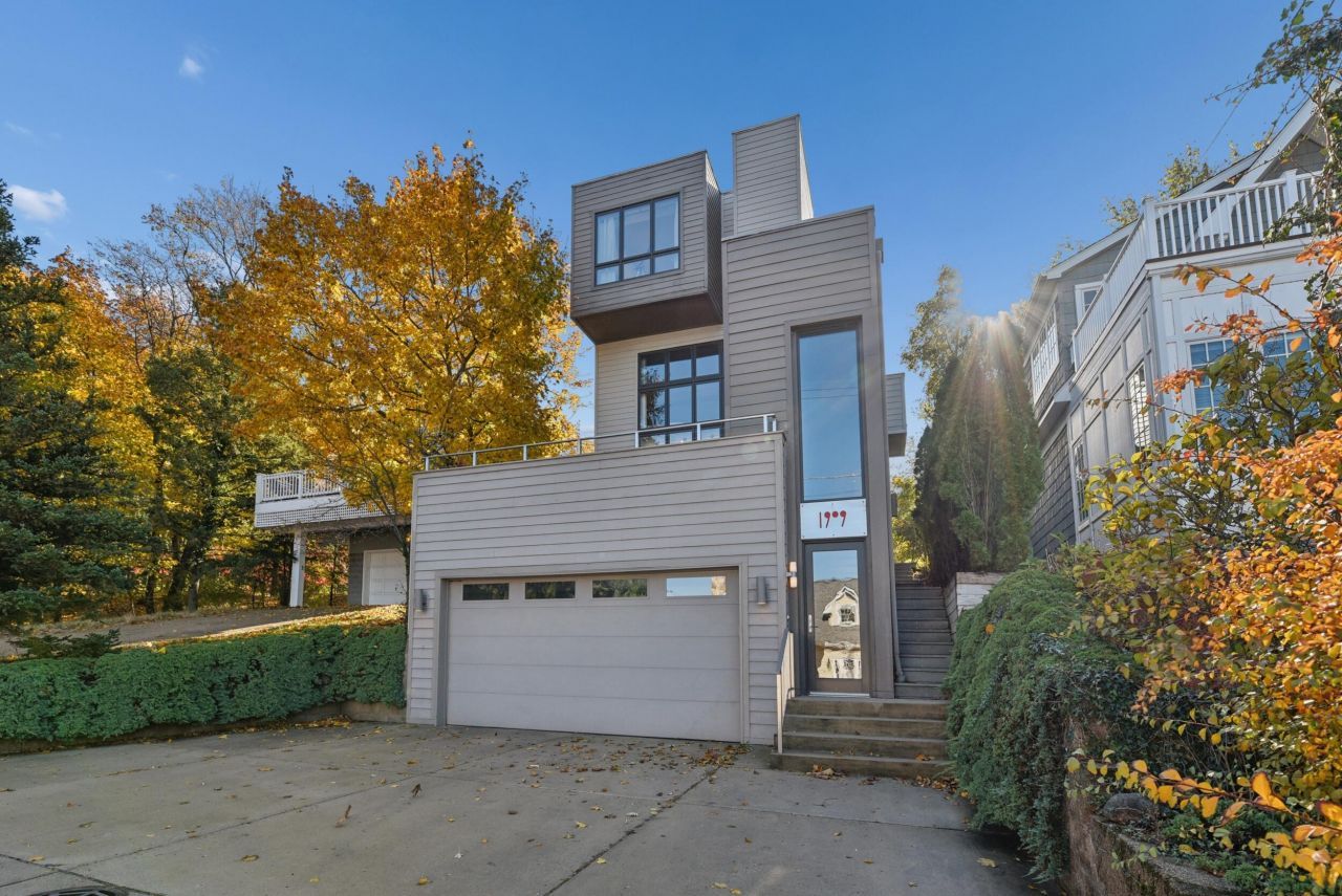 1909 Lake Shore Drive, Long Beach - Stunning 4-Level (has and elevator) Mid-Century Home with Lake Michigan Views This exceptional 4-level home offers a perfect blend of mid-century design and modern luxury. Located just steps from the beach, it features breathtaking views of Lake Michigan The ground level includes a 2-car garage with direct access, while the main living level boasts a sunny living room leading out to a 20-foot deck, a large family room with fireplace, and a chef's kitchen with custom Berch cabinets and an eat-in area. Upstairs, you'll find two master bedrooms, and two additional bedrooms. The top level is a fantastic loft bedroom with floor to ceiling windows and a private deck. The home is fully updated and includes a convenient elevator serving all levels. Don't miss this unique opportunity to own a piece of architectural excellence exclusively designed by Bamesbeger Architecture.
