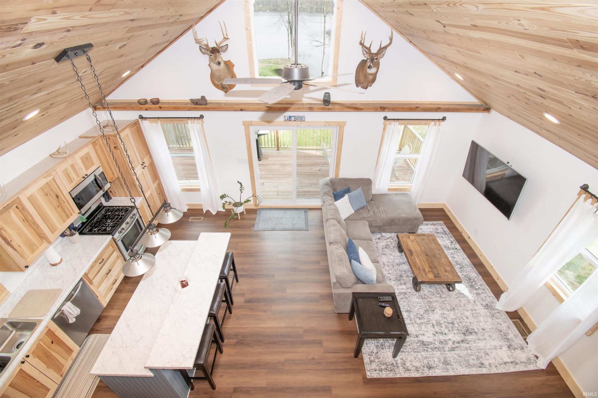 Amazing Lakefront Home for sale on Pigeon Lake in Shipshewana Indiana. This peaceful lake home offers scenic views, sandy shorelines, and direct water access on a quiet road. Home is a large 2200 square feet with 4 bedrooms and 3 full baths. Every inch has been meticulously remodeled with excellent care and craftsmanship. The open floor plan, vaulted ceilings, and large windows overlooking the lake a simply amazing. The remodel included everything down to the studs: new roof, siding, windows, and doors on the exterior and new insulation, drywall, paint, vinyl plank flooring, carpet, trim, custom cabinetry, kitchen island, showers, tubs, appliances, and window treatments on the interior. Basement is equipped with plumbing for kitchenette or wet bar. Work from home with REMC Fiber Optic internet. With wrap around deck overlooking the lake, walkout basement, large 24x24 garage with electric, and custom shed, your new dream home is waiting for you.