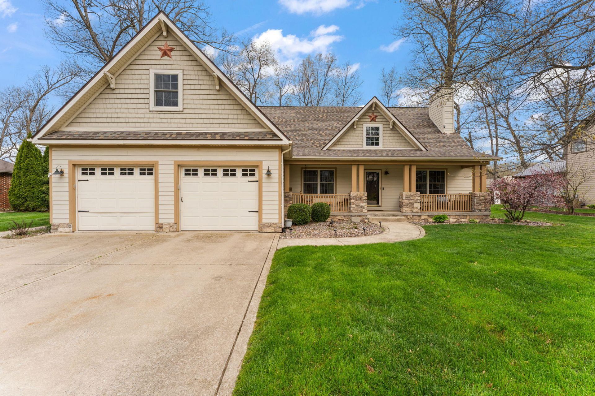 Welcome to 601 Eastwood Dr, a beautiful 4-bedroom, 2-bath Cape Cod that perfectly blends small town charm with modern updates. Situated at the end of a quiet dead-end road in a highly desirable neighborhood near the public library, this home offers privacy with virtually no through traffic while still being very close to town. The main level welcomes you with wide-plank hardwood floors and a bright, open-concept layout. The kitchen features new stainless-steel appliances, granite countertops and white cabinetry which flows seamlessly into the dining and living areas. Enjoy the living room with its cathedral ceilings and floor-to-ceiling stone fireplace or retreat to the cozy sunroom, which boasts durable epoxy flooring that extends out onto the back patio. The primary suite features a completely remodeled bathroom with a double vanity and brand-new walk-in shower. Significant mechanical and exterior upgrades provide total peace of mind, including a new roof, new gutters with gutter guards, premium Smart Siding, and a new two-zone furnace for efficient climate control. Every room shines with new light fixtures, while the bedrooms feature newer high-traffic carpet for maximum comfort. The home features a 2.5 car heated garage and a storage shed for even more room. This turnkey home is ready for its next chapter.