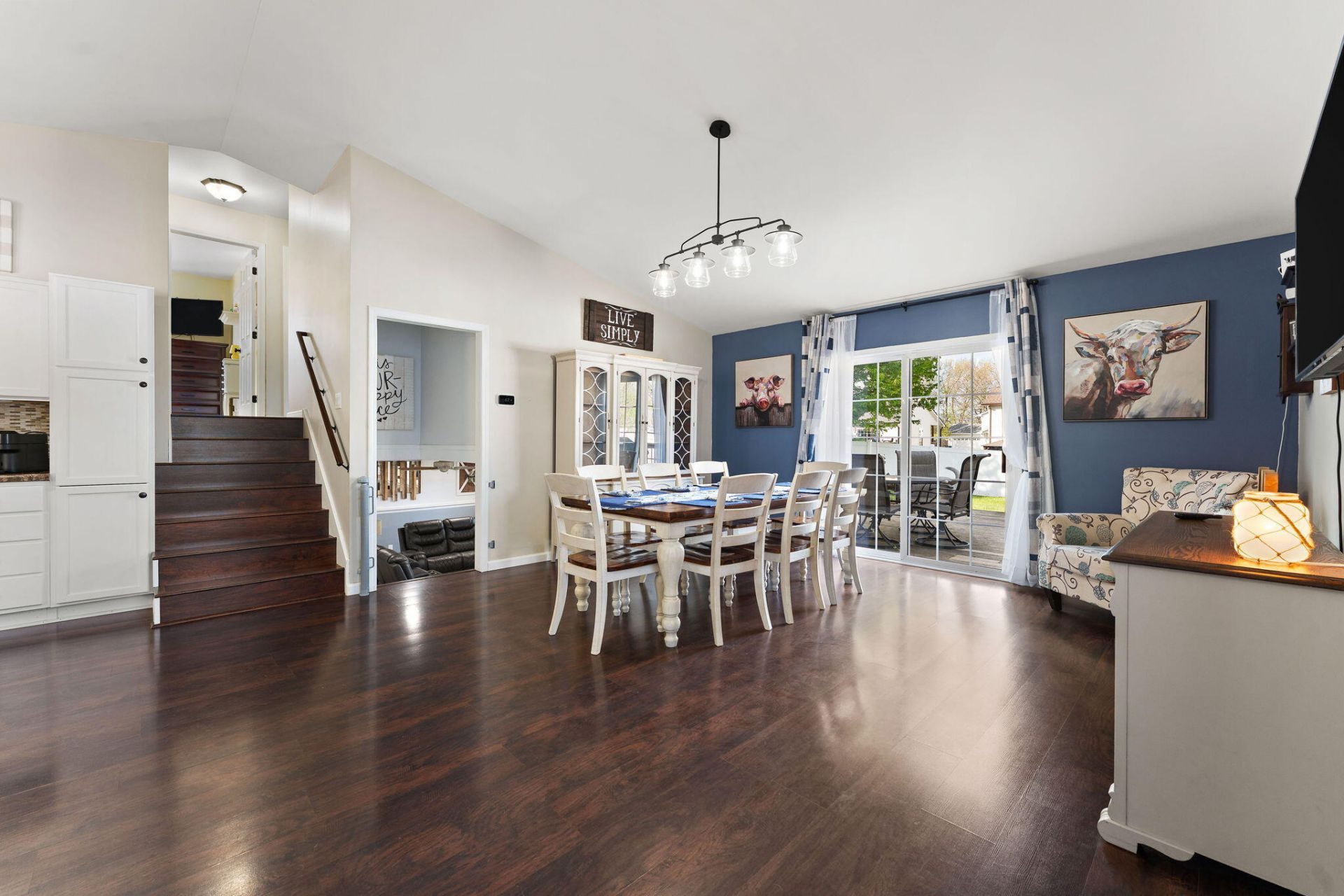 Welcome to this well-cared-for four-bedroom, three-bath tri-level home located in the desirable Shamrock subdivision. Thoughtfully updated and meticulously maintained, this home offers both comfort and functionality across every level. Upon entry, you're greeted by an inviting, open-concept kitchen featuring modern updates and stainless steel appliances. The adjoining space offers flexibility--currently used as a dining area, it could easily serve as a main living room depending on your needs. The lower level provides a spacious second living area, perfect for relaxing or entertaining, complete with a built-in bar and stainless wine cooler. This level also features a private bedroom with its own attached bathroom--ideal for guests or related living--along with a laundry room and mechanicals that are approximately five years old. Additional features include a whole-house humidifier, tankless water heater, and owned water softener. Upstairs, you'll find three additional bedrooms, including a primary suite with its own private bath, plus an additional full bathroom to serve the remaining bedrooms. Step outside from the main level onto the deck overlooking a fully fenced backyard designed for summer enjoyment, featuring a swimming pool and plenty of space to unwind or entertain. Additional highlights include gutter guards and a heated garage. This home has been consistently cared for and offers a warm, inviting feel--ready for its next chapter.