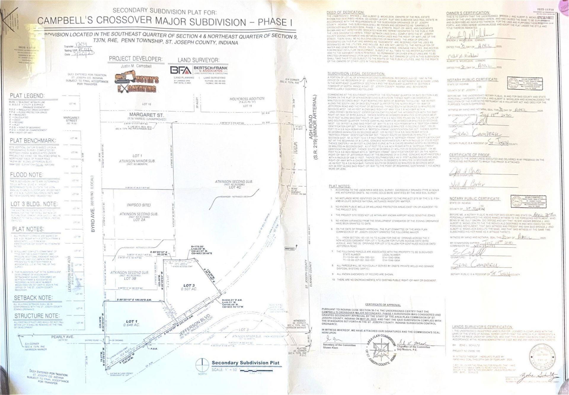 3.94 acres in prime location in Penn School District! The property has been surveyed and plans drawn to divide the property on the corner of Ash and Jefferson with access off of Byrd into (5) 1/2 acre lots with a retention pond. All of the permits and most of legwork is done so the buyer can either finish the divide by bonding the property and adding the curb cuts, leaving the property as is or building on the .39 acre lot off Byrd and potentially split the 3.55 parcel off of Ash into smaller lots. Many possibilities here.