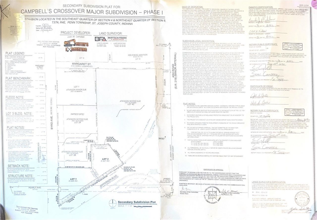 New subdivision plan in a prime location in Penn School District! The property has been surveyed and plans finalized to divide the property off of Byrd into (5) 1/2 acre lots with a retention pond. All of the permits and most of legwork have been completed. The buyer will need to bond the property and add the road/curb cuts.