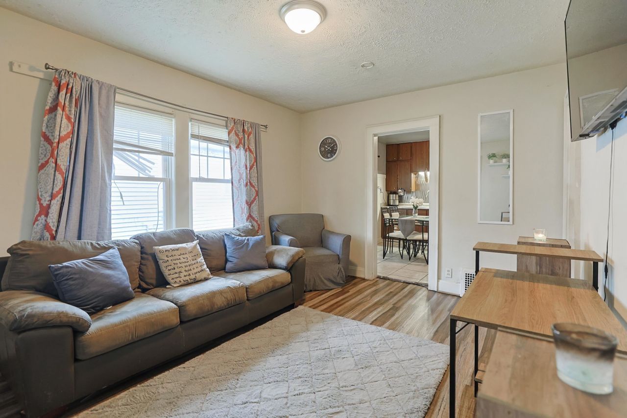 Cute as a button and light and bright, this one level home is ready for you! The kitchen features ceramic tile flooring, stainless steel appliances, a fun funky backsplash and industrial style open shelving. The cute and white bathroom features modern finishes and ceramic tile flooring, while the cozy bedrooms offer laminate flooring and ceiling fans. A full unfinished basement provides abundant storage, laundry area and the opportunity to create additional living space to suit your needs. Outside, the fully fenced backyard offers peace of mind for pets or little ones to play safely. The detached garage is great for your vehicles, lawn and garden supplies and toys. Covered front porch is a great spot for your morning coffee. Move-in ready and super cute! *BONUS*-seller has home next door for sale as well, buy as a set with your bestie, favorite sibling or a parent. Interested in a rental portfolio? See agent remarks or contact listing agent for more details. Property is presently rented for $1100/month.