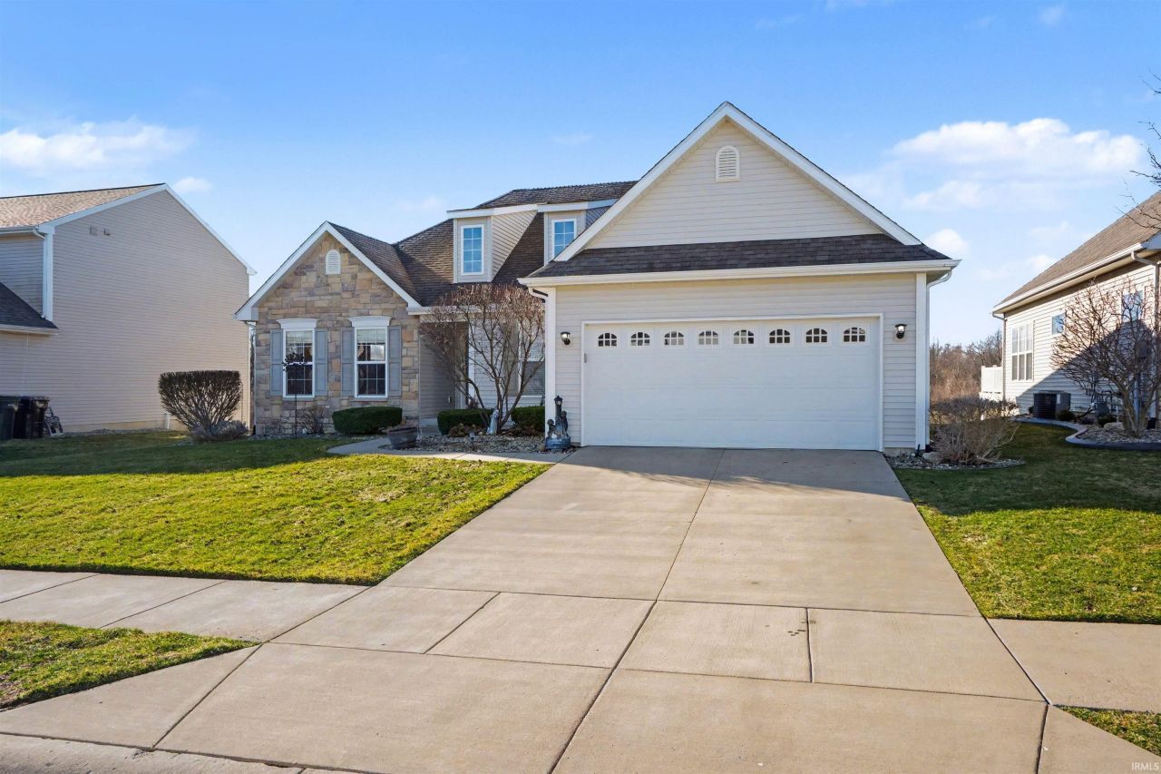 Welcome to this charming home in the desirable Lafayette Falls neighborhood! Featuring 4 bedrooms and 3 full bathrooms and over 2400 finished square feet, the open-concept layout creates a bright, spacious feel perfect for everyday living and entertaining. The living room has a cozy fireplace, while the sunroom just off the kitchen offers a relaxing space to take in every season. The eat-in kitchen is equipped with Corian countertops, 1 year-old stainless-steel appliances, custom cabinetry and a convenient breakfast bar. You'll also appreciate the main-level laundry and a comfortable primary bedroom with a private en-suite bath, double vanity and a oversized walk-in closet. The finished lookout basement adds even more living space with a large entertainment area, additional bedroom, full bathroom and plenty of storage with an all-in-one washer/dryer combo in addition to the main floor laundry. Enjoy the deck off the main floor in the back yard that overlooks a pond. Additional features include a tankless water heater, sprinkler system and a double-insulated garage. This home truly has it all...schedule your private showing today!