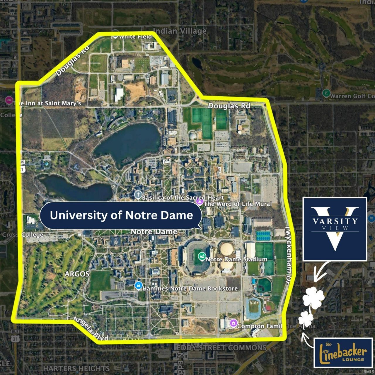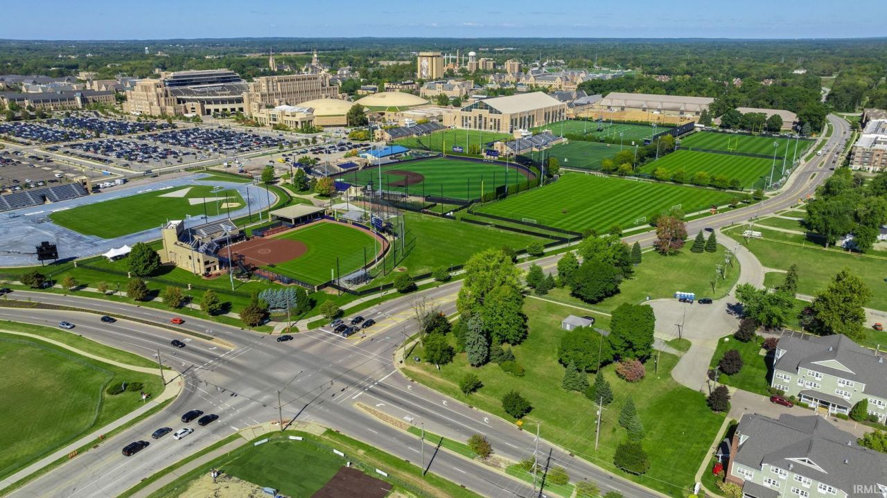 ***5.00% Pre-construction pricing discount off the listed price, available for a LIMITED time*** Varsity View Luxury Condominiums is located at the NE corner of Angela and South Bend Ave across from the iconic Linebacker Lounge. Just 1 block back from the Notre Dame Sports Complex, Varsity View has epic views of the Stadium, Golden Dome and Touchdown Jesus. This 5 story, new construction condo development offers on site parking, a variety of floorplans from 1-4 bedrooms and awesome common amenities like a gym, storage lockers, roof top decks/lounge with panoramic views on the 5th floor. Interiors offer modern finishes in either blue or gold level packages. Balconies provide outdoor living space and a chance to hear the roar of the stadium. Walk home from campus or gameday and be relaxing in your luxurious unit before others have left the parking lot! Completion is expected in Summer 2026, making now the perfect time to secure your place in this one-of-a-kind community. Unit 203 offers a 1,584 sq. ft. 4 bed, 2 bath flat with a primary en-suite bedroom & bath, open concept layout, balcony and views, upgraded finishes including a quartz feature wall with fireplace, custom brass strapped range hood, tile showers and a dedicated parking space. *Renderings are for illustrative purposes only and may differ from the actual floor plan.