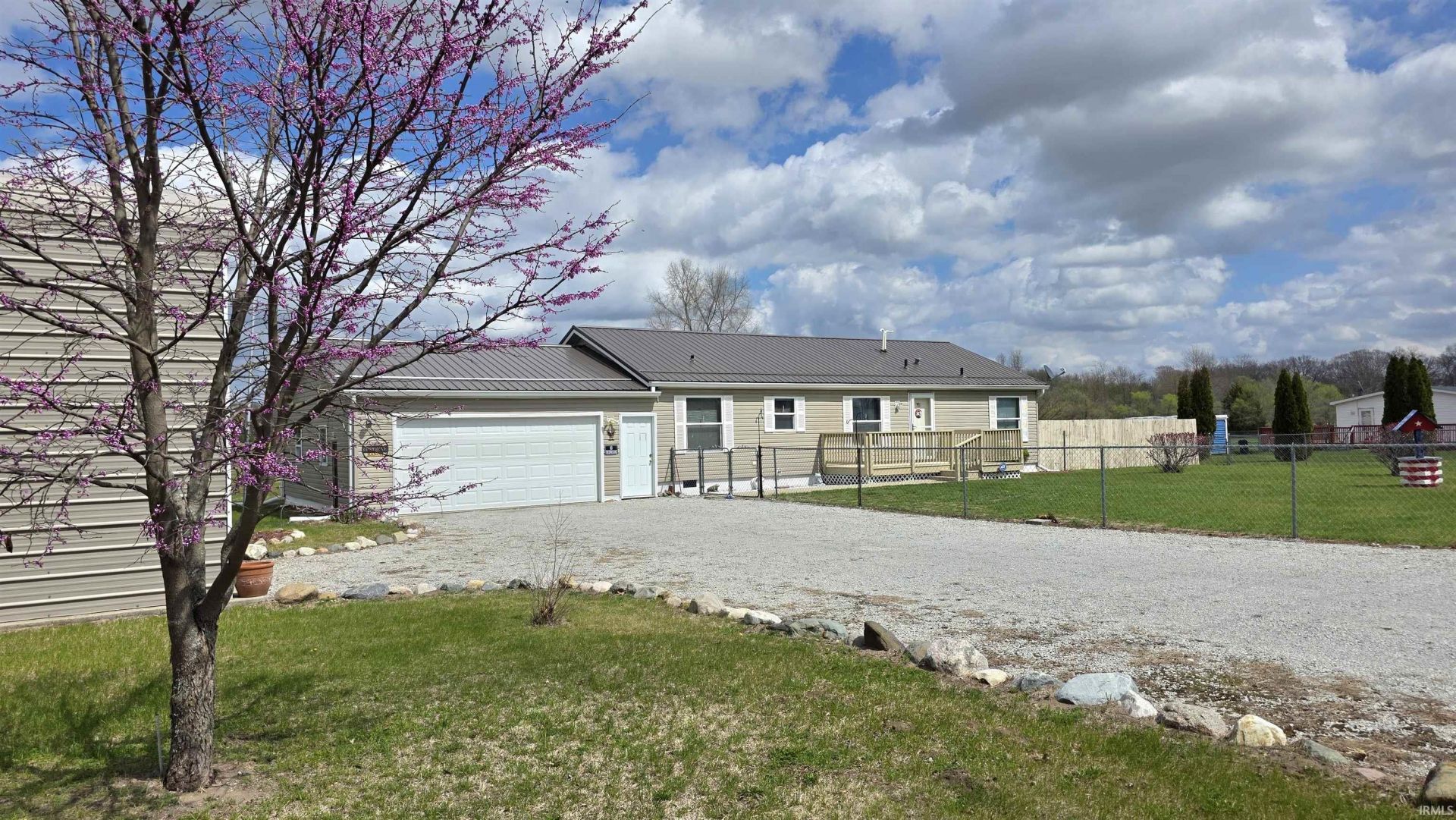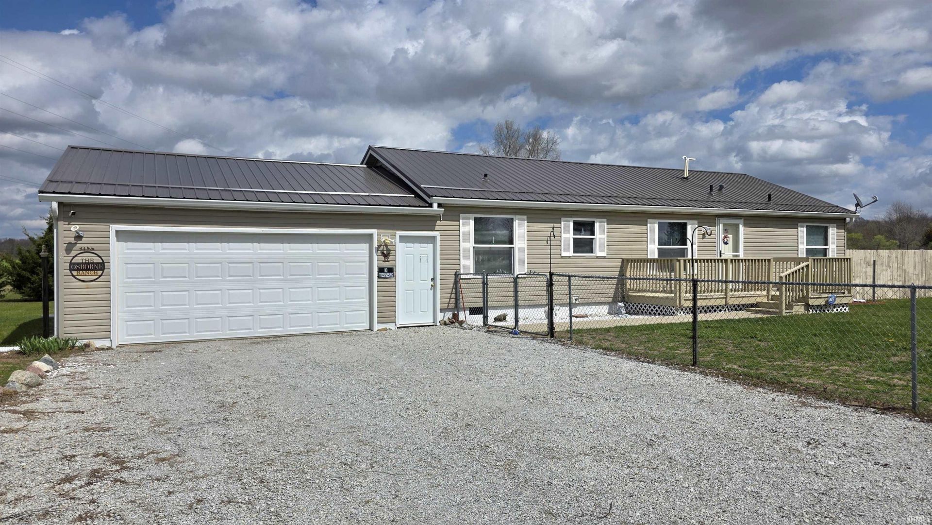 Charming Country Living on 2.2 Acres! This well maintained 3-bedroom, 2-bath manufactured home offers the perfect blend of comfort, function, and rural peace. Sitting on 2.2 beautiful acres, it features an open-concept living and dining area, a bright kitchen with breakfast nook and pantry with newer flooring. You'll love the details that make this home move-in ready?metal roof (2023), whole-house generator (2023), and water heater (2021). The attached 2-car garage adds convenience, while the freshly painted deck is perfect for relaxing or entertaining. The property also includes a partially fenced front yard and a pole barn with concrete floor and oversized lift-up door, ideal for storage, hobbies, or extra workspace. All appliances stay?including stove, refrigerator, microwave, washer, and dryer?so you can settle right in and enjoy your new home.