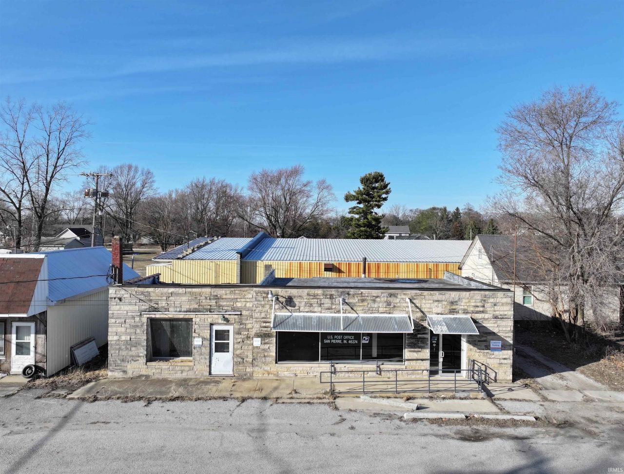 One-story commercial building located near Hwy 421 in the heart of San Pierre, IN. With over 1,000 sq ft and handicap accessible, this building's potential is limitless. Newer updates include vinyl flooring, roof, and furnace.