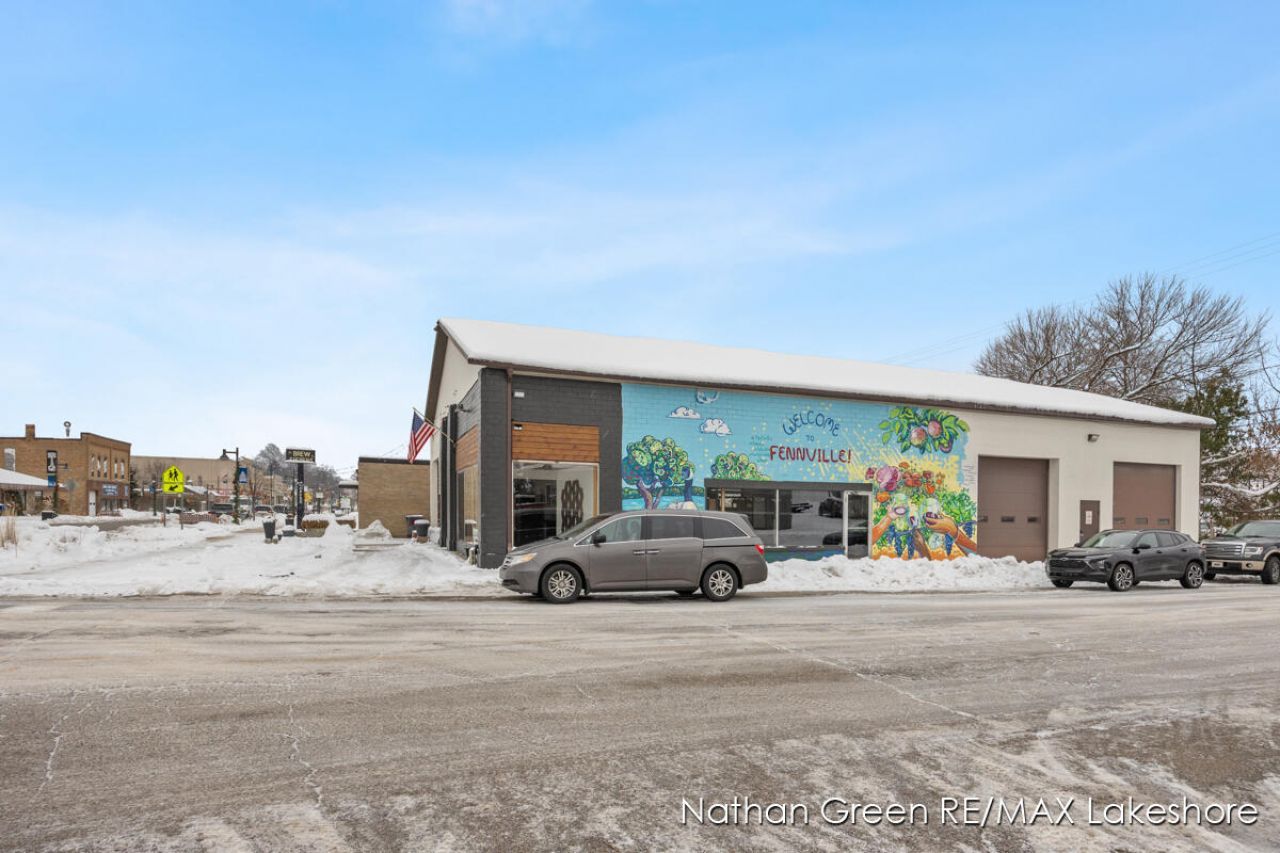 Opportunity is knocking! Come grow your business in the beautiful and award-winning downtown Fennville. This centrally located building is zoned for just about everything. With almost 5300 sqft under roof and a 1950 sqft patio on Main St. with a marquis sign, the opportunities are truly endless. High ceilings, multiple overhead doors, and a Welcome to Fennville mural makes this such an attractive corner location opportunity. Current owner has spent the time and money with the city and architects to get the building re-zoned for ground floor residential (back half) and the sale will include stamped plans for apartment and stamped report from structural engineer. About 700 sqft is currently leased to a coffee shop, which cover taxes and utilities for the entire building while new owner decides how to best utilize the space. Alleyway provides additional off-street parking. Seller is licensed Realtor in the State of Michigan. Please do not disturb tenants. No sign on property.