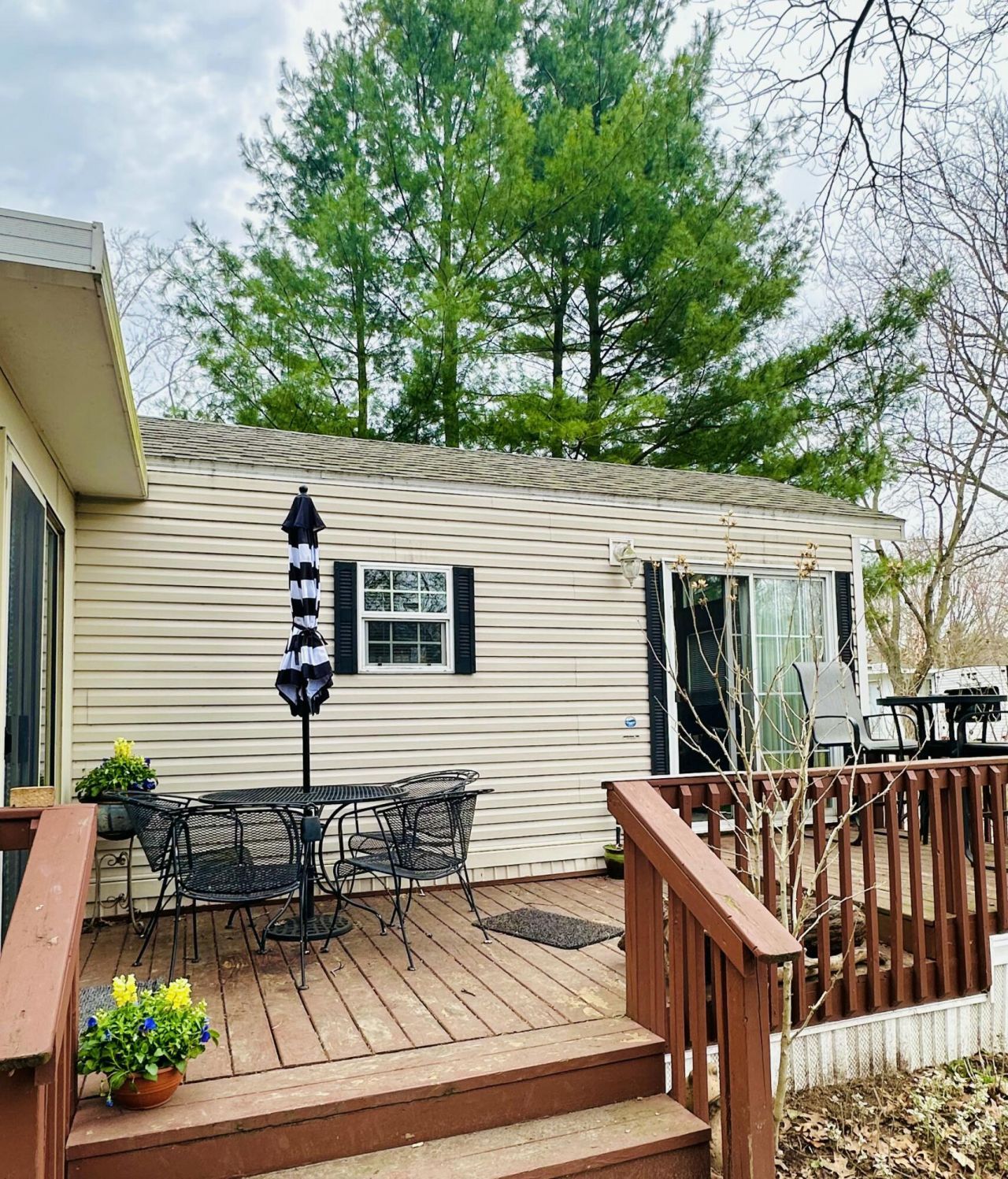 Discover your own getaway with this affordable, furnished park model home in the sought-after Saugatuck RV Resort (SRVR)--a gated community offering fantastic shared amenities. Enjoy a relaxing setting just minutes from all that Saugatuck and Douglas have to offer. Private path takes you to to association maintained beachfront on spring-fed Goshorn Lake over the dunes, a no-wake lake perfect for swimming, kayaking, paddleboarding, or simply enjoying the peaceful waterfront. This is a rare opportunity to own an affordable retreat in a highly desirable area. The quarterly association fee of $400 includes snow plowing, trash, lawn care, and access to a year-round clubhouse with bathrooms/showers, library, internet, laundry, kitchen, and gathering spaces, as well as use of community boats and boat launch. There is also an option for your own boat slip. Please note: seasonal water (water off Nov 1-Mar 31), no short-term rentals, and cash sale only.