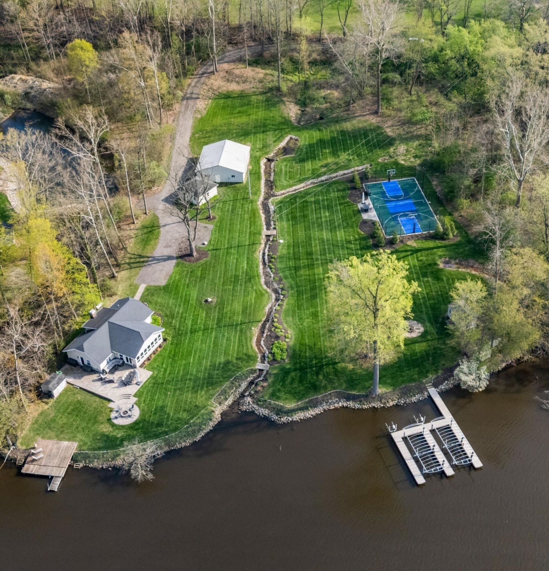 Rare opportunity to own one of Lake Chapins most extraordinary waterfront properties. Set on 3.52 private acres with 381 feet of frontage on all-sports Lake Chapin, this beautifully renovated 3 bedroom, 2 bath walkout lakefront home offers an exceptionally rare combination of privacy, natural beauty, recreation, and usability that is nearly impossible to replicate in Southwest Michigan. With its own artesian stream winding through the property with waterfalls and footbridges, a gradual slope to the waters edge, and no stairs at all, this is a truly remarkable lakefront retreat designed for peaceful living and effortless enjoyment of both the lake and the land.The setting is what makes this property unforgettable. Surrounded by mature trees and expansive open lawn, the property feels private, serene, and worlds away from the pace of everyday life. From the gentle sound of the flowing artesian stream to the sweeping lake views and beautifully landscaped grounds, every part of this property has been crafted to create a sense of calm, space, and escape. It is rare to find a waterfront property that offers this much frontage, this much land, and this much privacy, all in one setting.Completely gutted and remodeled in 2016, the home blends warmth, character, and comfort with stunning lake views from nearly every angle. Inside, youll find vaulted ceilings, large plank wood floors, heated bathroom floors, updated electrical, mini splits with heat/AC throughout, a beautiful kitchen with a large island and pantry, and a spacious living room addition with a wall of windows overlooking the lake. The primary bedroom features an attached bath with tiled shower, while the original stone fireplace in the kitchen adds timeless character and charm. Though the home itself is inviting and beautifully finished, the true luxury of this property is how seamlessly it connects to the extraordinary setting around it.Outdoor living here is every bit as special as the home itself. A large custom stone patio and firepit area at the waters edge create the perfect place to relax, entertain, and take in the peaceful lakefront surroundings. The new dock and boat lift system includes 2 boat slips with lifts, 2 jet ski lifts, and a permitted option for a 3rd lift, making this an exceptional property for boating, fishing, and enjoying all-sports Lake Chapin to the fullest.Adding even more distinction is the rare custom sports court with pickleball, volleyball, basketball, and stadium lighting, an amenity almost never found in a private lakefront setting like this. It creates an entirely different layer of recreation and entertaining value, making the property just as well suited for gatherings and family fun as it is for quiet mornings and peaceful evenings by the water.The property also includes a 40x36 pole barn, separate 2-car garage, and dockside shed, providing exceptional storage for boats, vehicles, recreational equipment, and lake toys. Additional improvements include irrigation run to the garage, new well bladder tank, septic ejector pump, and 2 propane tanks. For buyers seeking even more potential, there may be room to expand the current home or build an additional home, offering flexibility and long-term value that is rarely available in a waterfront property of this caliber.Located approximately 90 minutes from Chicago, 25 minutes to South Bend airport and just 12 miles from St. Joseph and Lake Michigan, this one-of-a-kind property offers easy access to So
