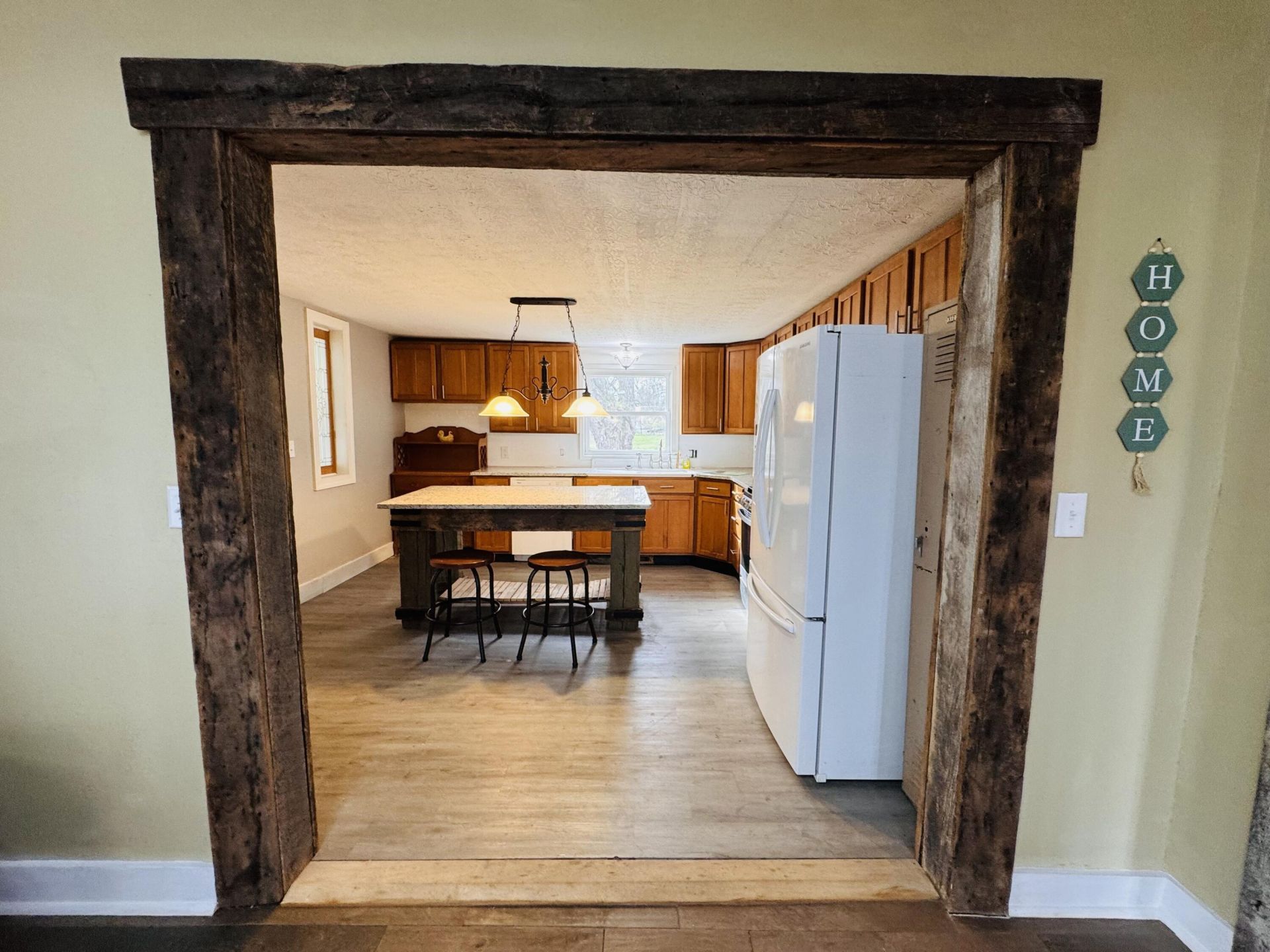 Welcome home to this beautifully renovated 2-bedroom, 1-bath home situated on nearly an acre. With final renovations currently being completed, this home will be fully finished and move-in ready by closing. Sit out and enjoy your morning coffee on the newly added front porch. The kitchen featuring a custom barnwood island, vintage farmhouse sink, and stunning granite countertops--ideal for both everyday living and entertaining. Convenient main-level laundry just off the kitchen adds ease to your daily routine. The bathroom showcases a custom antique vanity with double vessel sinks for a unique touch. Enjoy peace of mind with a durable metal roof. The oversized 2-car garage is ideal for parking, storage, or hobbies. Step outside to a fenced backyard--perfect for entertaining, kids, or pets. Tucked in a quiet location with easy access to South Bend, Mishawaka, Granger, and Notre Dame, this home offers both comfort and convenience. Dont miss out--this one wont last!