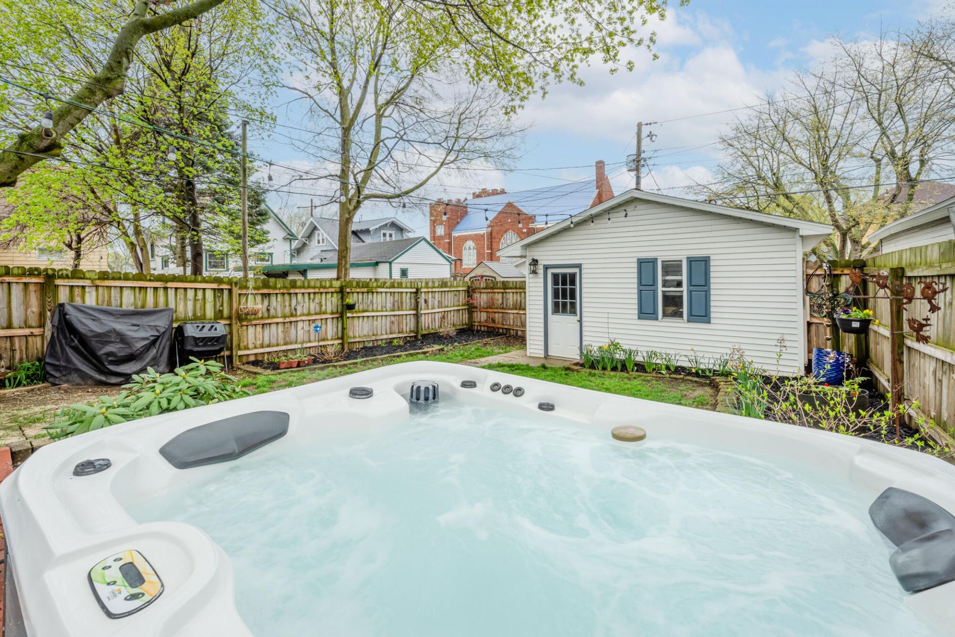 Updated downtown Cape Cod, close to everything! Dont miss this gem with private backyard, garage off alley, heated front porch and so much more, located across the street from Milton Park. Open kitchen, paver patio, chiminea, hot tub, clean basement, extra parking spot, remodeled main bathroom, new carpet in main bedroom, skylights in office area/living room. Third sleeping area upstairs. Dry basement with tv area, laundry and storage. Home can be sold fully furnished. HVAC 4 years new, plumbing 2 years new, roof 12 years new. Dont miss out!