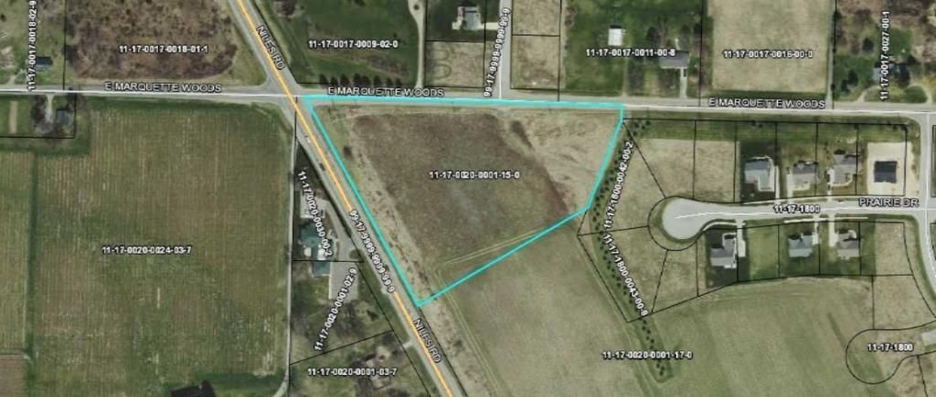 Great 5 acre high traffic Commercial opportunity, with road frontage on both E. Marquette Woods and Niles Rd./M-139. Perfect for Commercial development, convenience store, retail, etc. There are hundreds of homes tucked away in the area to the East, besides the traffic between St. Joseph/Benton Harbor, Berrien Springs, Niles, and South Bend daily. Possible land contract.