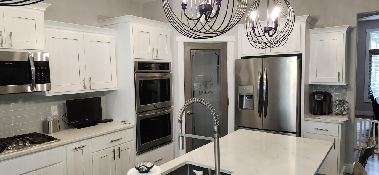 Built in 2019 on 3.9 Acres 3 car garage, main level laundry, fireplace, 4 bedrooms three baths, 2 kitchens, Deck fenced in area off deck, 2 screened in porches. Propane heat, Central air. Quartz counters. Landscape Lighting, Surround sound system, Dog run off the garage.All sports lake.