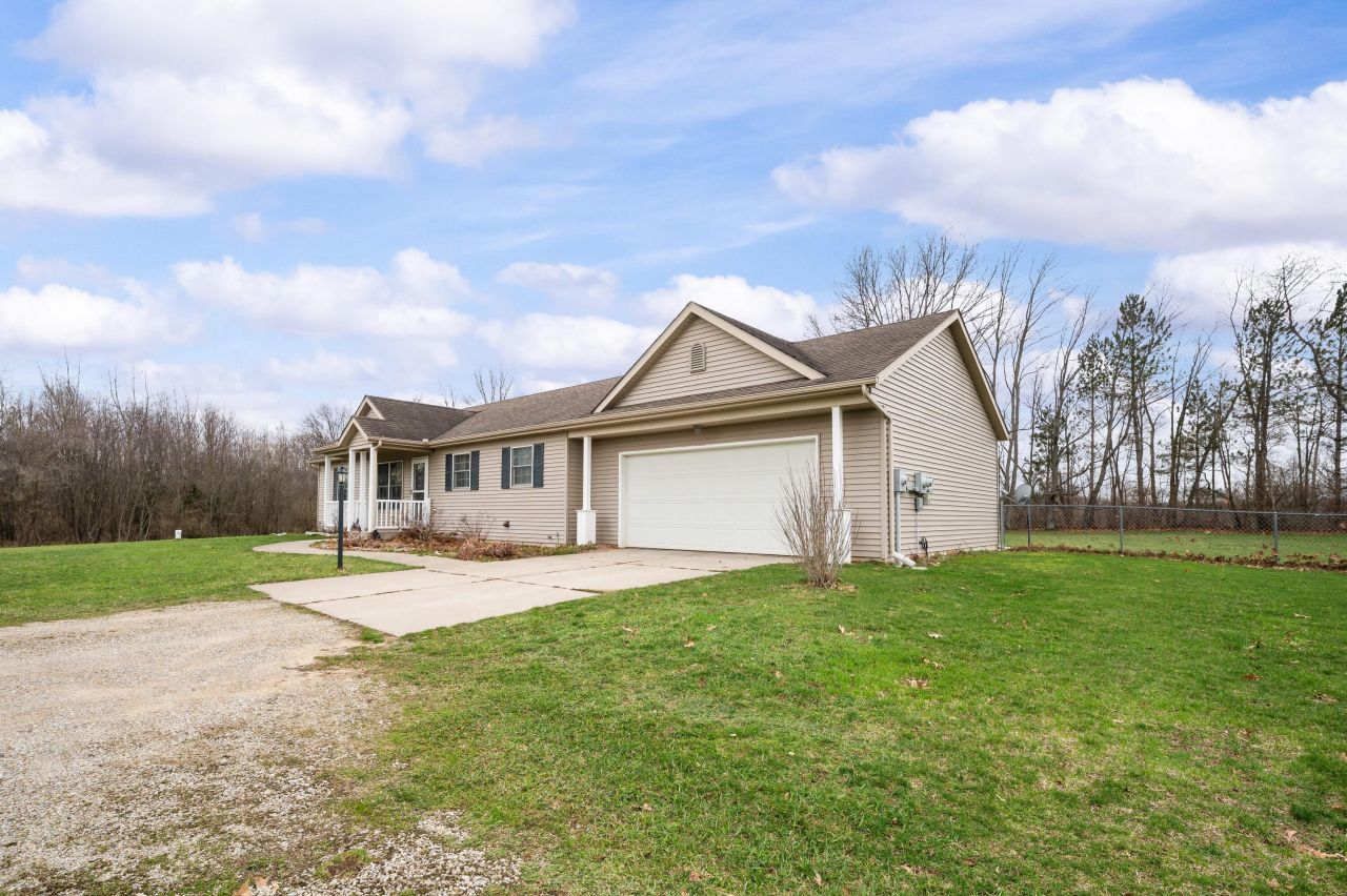 Welcome to your new horizon at 1540 Dodd Road, a wonderfully maintained ranch-style home set on 1.5 acres in a peaceful country setting, built in 2009 and ready to welcome its next owners. This inviting 3 bedroom, 2 bath home offers an open concept layout filled with tons of natural light, creating a bright and comfortable living space throughout. The primary bedroom features a private ensuite bathroom and is separated from the additional bedrooms for added privacy. The main floor laundry adds convenience, while the finished basement expands your living space and even includes a pool table and a ping pong table that will remain with the home. Step outside through the sliding glass door to a large deck that is perfect for entertaining, overlooking a fenced-in backyard and offering beautiful water views (no water rights). A charming front porch welcomes you home with scenic country views, and the two car attached garage provides plenty of storage and functionality. The home is fully electric for simplified utilities and is equipped with Midwest Energy and Communications fiber internet for fast and reliable connectivity. While there is currently no dishwasher, the home is already plumbed and ready for one to be installed. With most personal property also available for purchase, this property offers flexibility and opportunity, making it a truly special place to call home. Lets move your horizon.