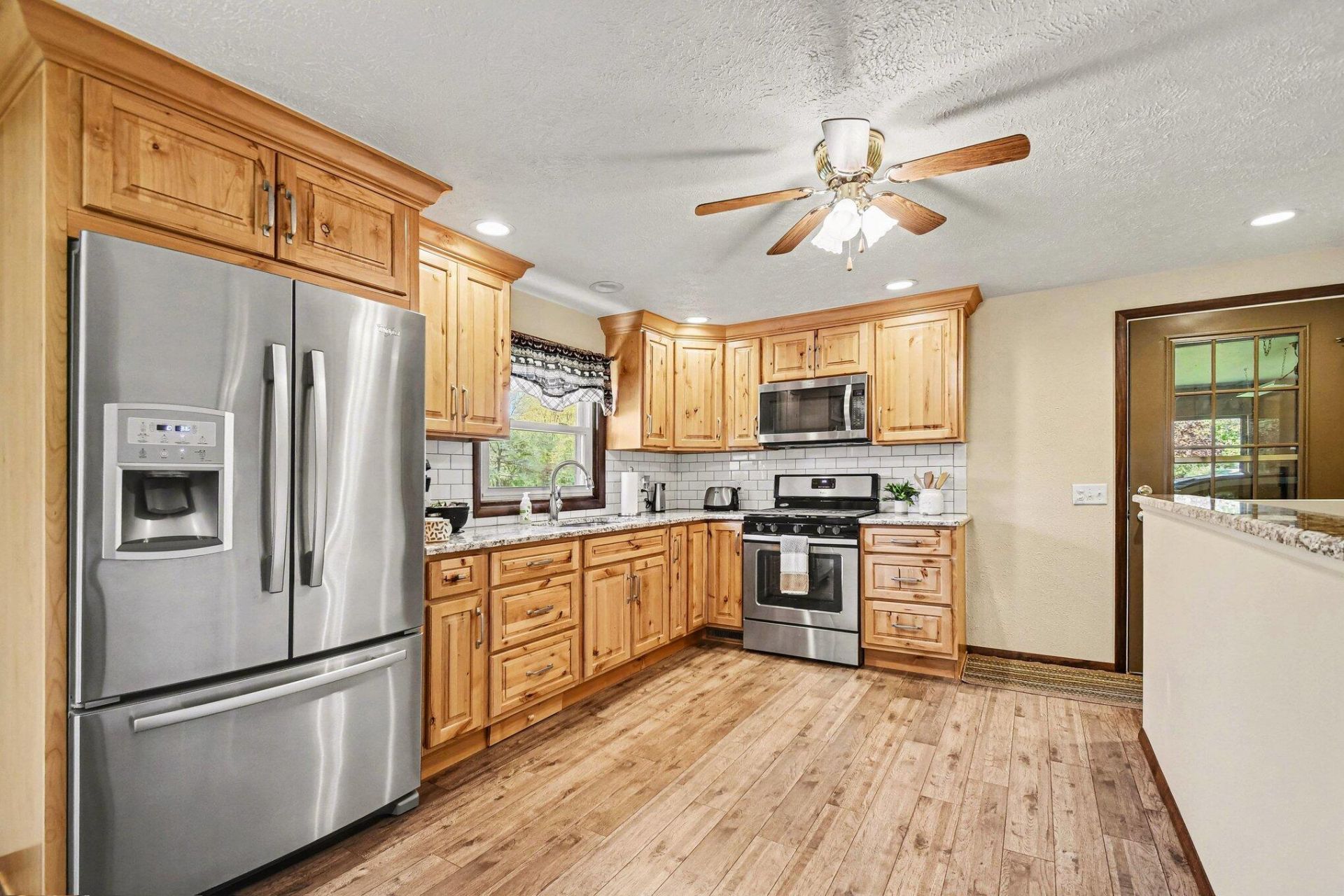 Move in ready and meticulously maintained by its second owner, this inviting home is nestled on a peaceful 1.33 acre setting that offers the perfect balance of privacy and convenience. From the moment you arrive, the pride of ownership is evident throughout. The thoughtfully designed kitchen features granite countertops, ss appliances, KraftMaid soft close cabinetry, luxury vinyl plank flooring, and is plumbed for a dishwasher, making it both functional and stylish. A slider off the kitchen leads to the deck, creating an ideal space for relaxing or entertaining while overlooking the spacious yard complete with an in ground sprinkler system. The bright and welcoming living room is filled with natural light and centered around a cozy wood burning fireplace. The primary offers a comfortable retreat with its own private en suite, while two additional bedrooms and a full bath complete the main level. The full basement is clean, dry, and offers excellent versatility with a finished area that can serve as a family room, recreation space, or game room, along with a dedicated laundry area and ample storage. A second garage provides the perfect solution for all of your outdoor storage needs, ideal for tools, equipment, or recreational items.Set in a tranquil location yet conveniently close to shopping, dining, and everyday amenities, this home truly offers the best of both comfort and accessibility.