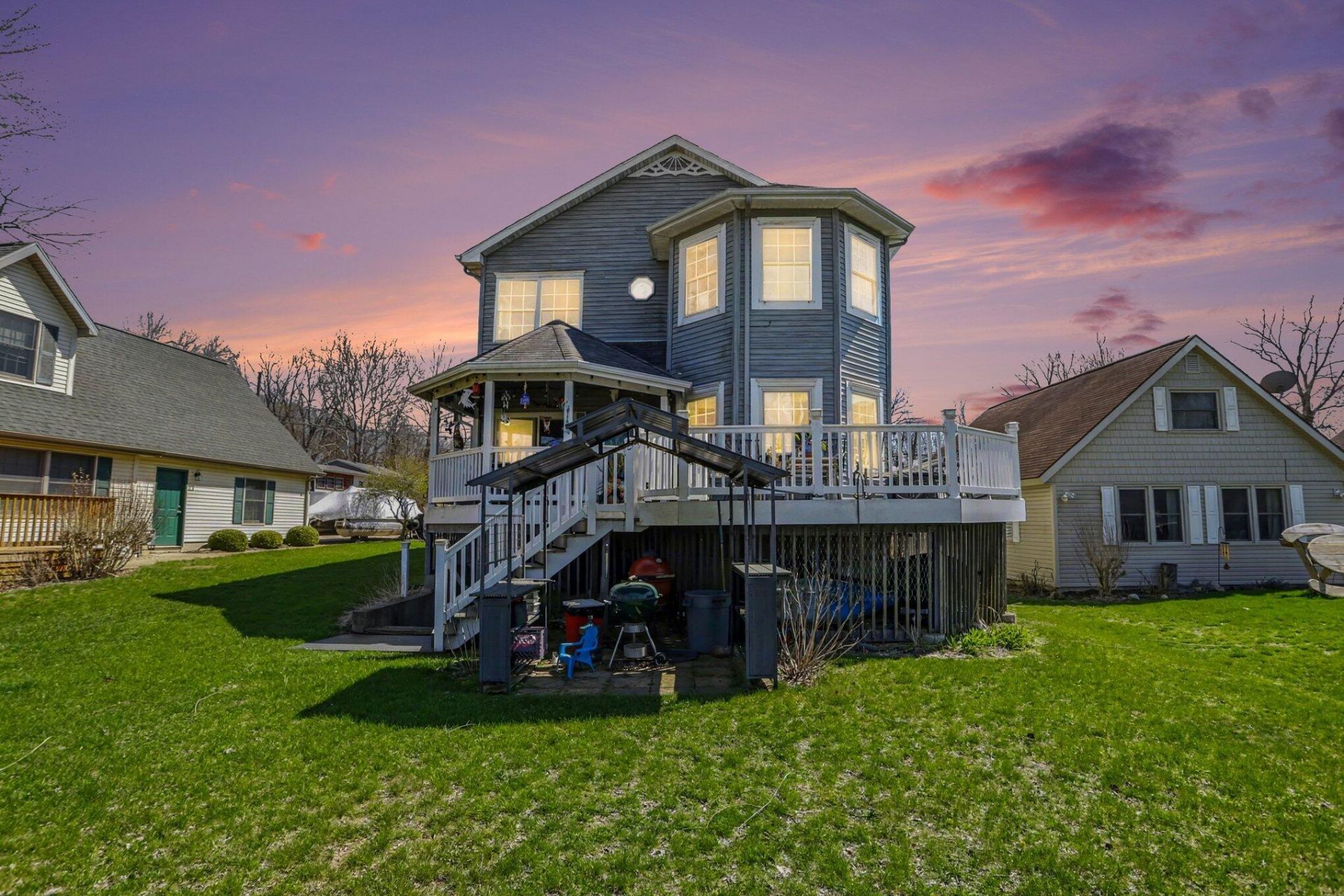 Stunning year-round 4-bedroom, 3-1/2 bath lake home on highly desirable Shavehead Lake (MI) with 56 feet of private frontage and a prime location on the water. This well-cared-for property offers an updated kitchen featuring quartz countertops, a Vulcan commercial stove, and all appliances included. The primary suite includes an updated bath, and the walk-out basement provides excellent additional living space with direct lake access.Enjoy outdoor living on the new composite deck, complete with a covered area ideal for shade and entertaining. A 2.5-car attached garage, whole-house generator, and ample storage add to the homes functionality. Lakeside amenities include piers, a shore station for a pontoon, and a convenient lake-side storage shed for all your gear.A rare opportunity to own a year-round home on one of the areas most sought-after all-sports lakes.