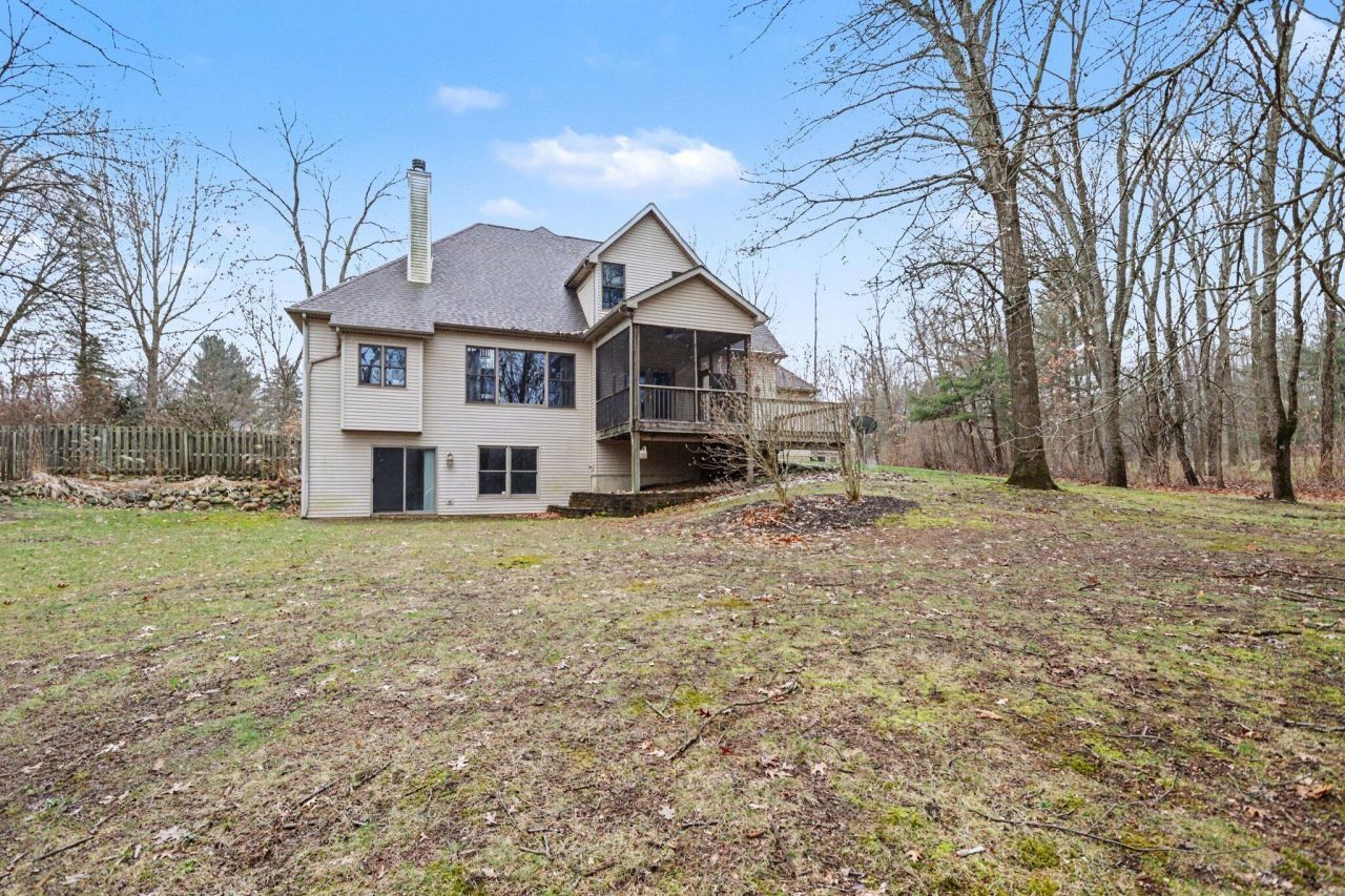 Welcome to this contemporary brick home in desirable Augusta, offering 5 bedrooms, 3.5 bathrooms, and a spacious, well-designed layout. Vaulted ceilings create an open, airy feel throughout the main living areas, filled with natural light. The living room features a cozy fireplace, perfect for relaxing or entertaining. The kitchen flows seamlessly into the dining and living spaces, ideal for everyday living and gatherings. A finished basement provides additional flexible space for recreation and/or guests. Enjoy the screened porch and deck overlooking a large, private lot, offering both space and seclusion. Additional highlights include a 3-car garage and thoughtful design throughout. This property offers comfort, functionality, and a peaceful setting with room to grow.