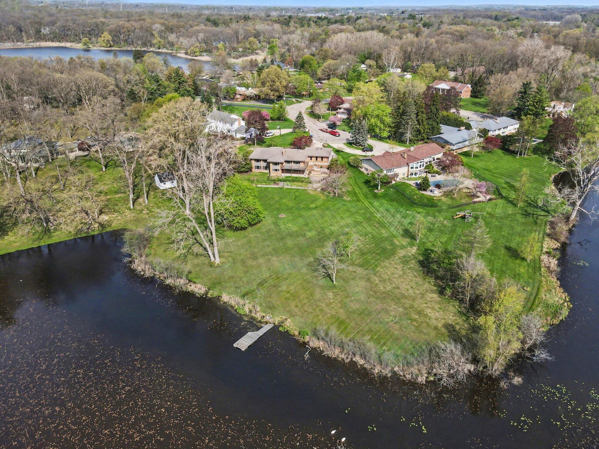 Custom-built all brick ranch walkout with spectacular setting on Limekiln Lake, beautiful 3.73 acre lot, large living room with formal dining area, remodeled kitchen with granite counter tops, stainless steel appliances and informal dining area. family room with beamed ceiling and fireplace, office with built-in bookshelves opening to a covered patio, main floor primary suite with large bath and private courtyard, main floor laundry. Lower level features large recreation room with fireplace and wall of built-in bookshelves, two additional family bedrooms, full bath, sewing/hobby room, workout room and large storage room with second laundry. Lovely deck, patio and floating dock to take in the views. Many recent improvements, complete interior paint in 2026, new A/C units/air handlers in 2025, new range, microwave, washer, dryer water heater in 2025. Portage Northern Schools, minutes from the new Kalamazoo Country Club, shopping, freeways and downtown Kalamazoo.