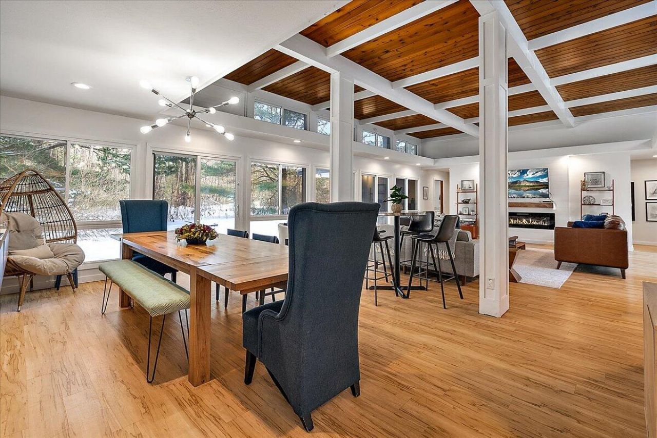 Tucked into 2.24 acres of private woodland, Hidden Haven delivers a rare blend of architecture, privacy, and resort level living. Walls of glass pull nature into every space, while warm mid-century design creates a setting that feels elevated yet inviting. Each bedroom opens to its own patio or deck, making the entire home live like a retreat. The 750 square foot primary suite was completely redesigned with a spa bath, private deck and wet barOutdoors, the experience continues. The inground pool was fully refurbished in 2022 with new mechanicals, expanded lounging areas, refreshed landscaping, and generous decking built for gatherings. Backing to a public preserve with walking access toward Pilgrim Haven Beach, you are wrapped in nature yet minutes from town. Strong short-term rental history offers strong income potential.